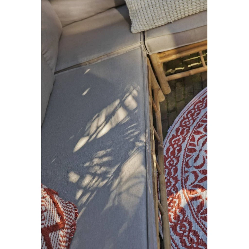 Deze zeer mooie bamboo hoek loungeset heeft een Aziatische look. Deze heerlijk comfortabele bank past eigenlijk wel in alle tuin thuis, maar heb je een tuin met een Aziatische look dan mag deze bank zeker niet ontbreken. De bamboo lounge set is voorzien van 3 zit kussens en maar liefst 6 rugkussens. De bamboo hoekbank word geleverd met een bijpassende koffie tafel.