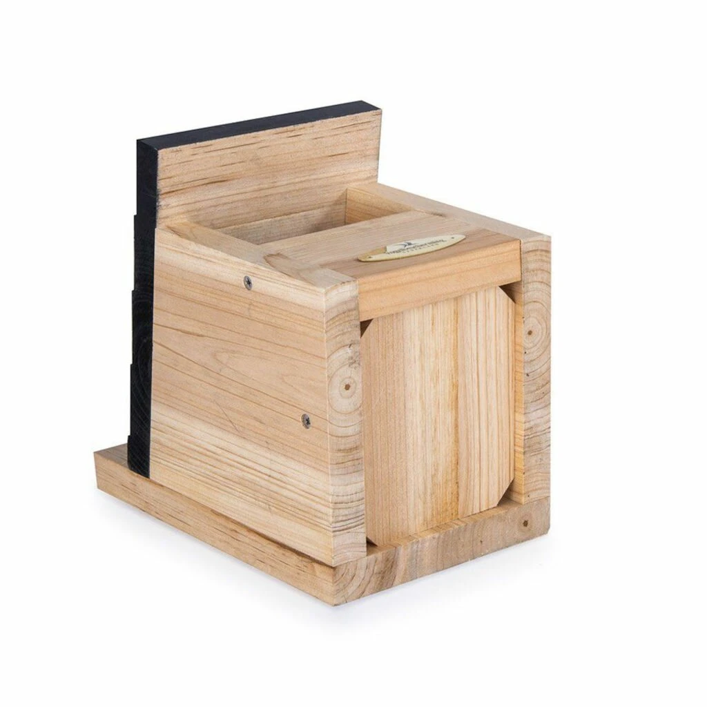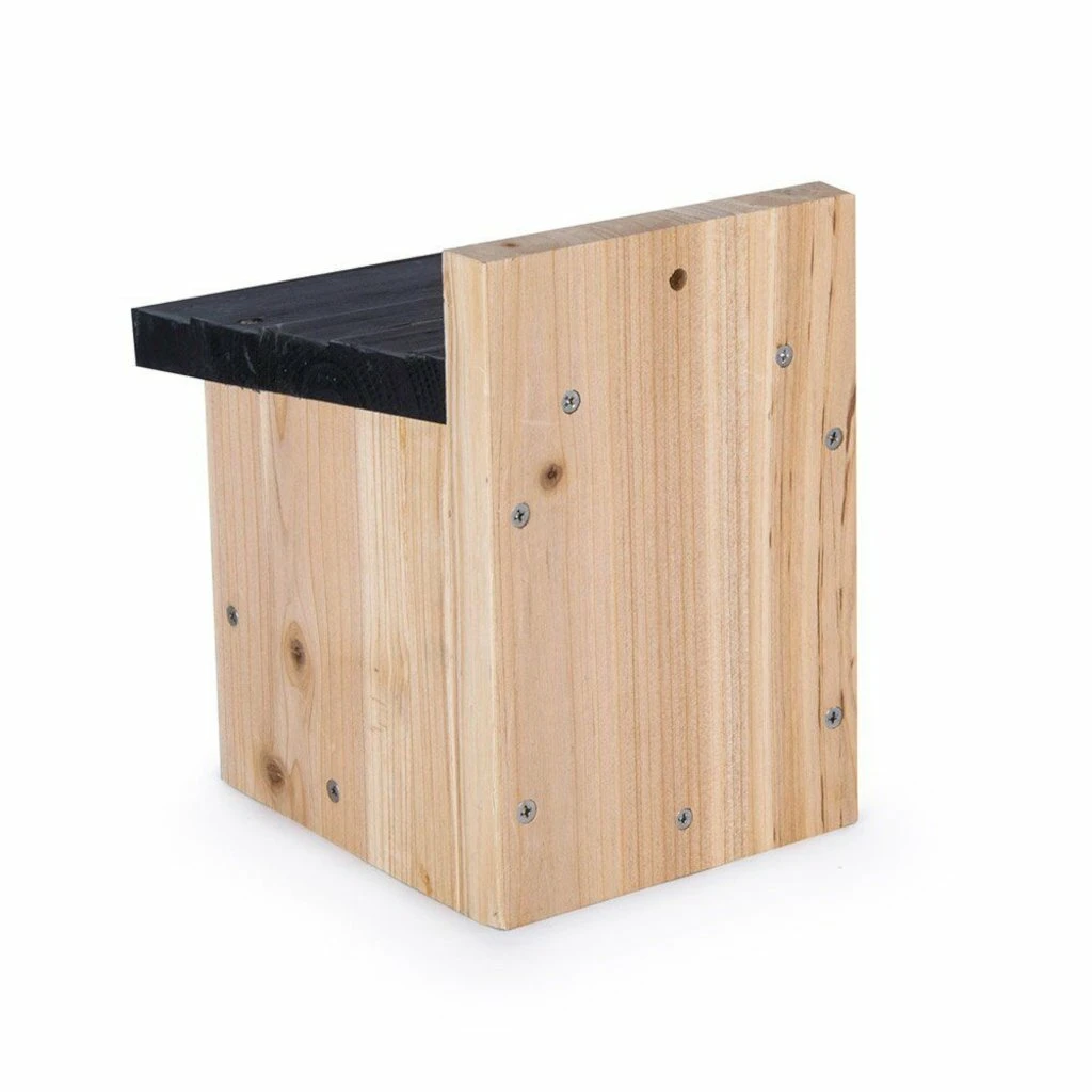 Als je graag merels of roodborstjes in de tuin hebt is dit nestkasje perfect. Deze nestkast is speciaal gemaakt voor merels en roodborstjes. Deze nestkast is ontwikkeld door Vogelbescherming Nederland. De vogeltjes maken graag hun nestje in deze nestkast door de grote en brede carport . Hang de nestkast laag op, 1,5 meter van de grond, in dichte begroeiing of onder de dakranden. De nestkast kan het beste op een beschutte plek gehangen worden en niet naar het zuidwesten. Dit om het inregen te voorkomen.